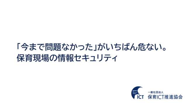 保育DX 「今まで問題なかった」がいちばん危ない。保育現場の情報セキュリティ 2026年4月1日 Miyoshi 保育ICT推進協会公式ブログ 情報セキュリティというと、「難しそう」「自分には関係ない」と感じる方もいるかもしれません。でも実際には、日常の業務の中にこそ、気づかないまま …